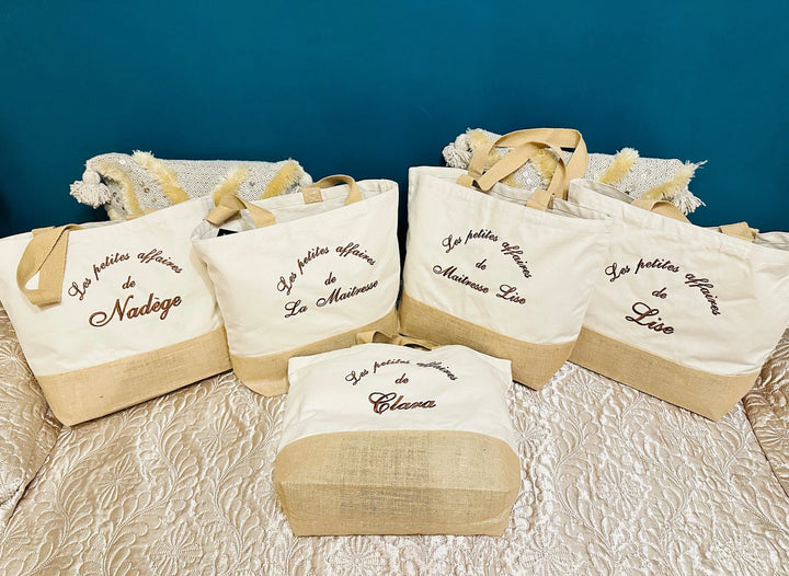 Découvrez notre sac en jute personnalisé, une manière écologique et élégante de transporter les affaires de maman ou de mamie. Chaque sac est brodé avec soin, ajoutant une touche personnelle à un accessoire pratique du quotidien.